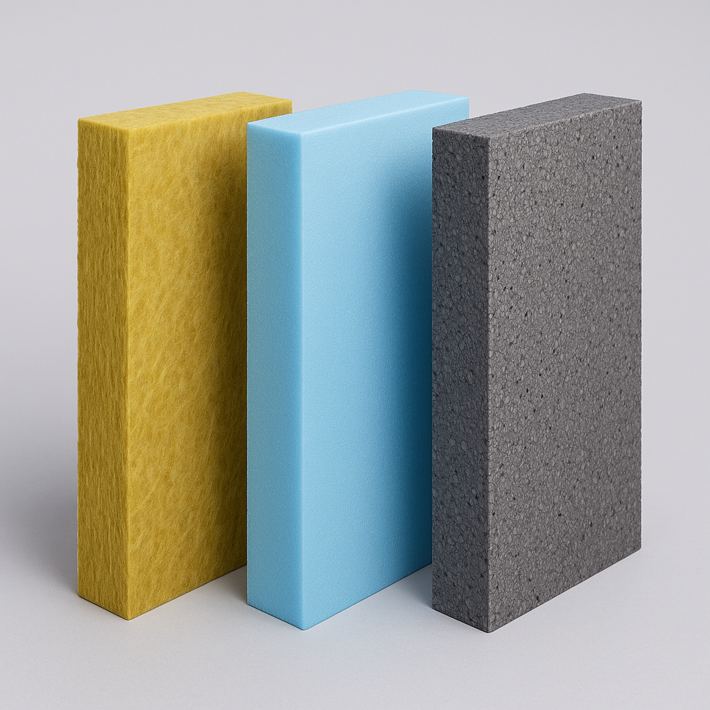XPS – nagy nyomószilárdság, lábazati és talajjal érintkező zónákhoz.